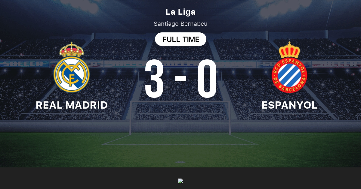 RCD Espanyol - Real Madrid Follow the Liga live Football match between RCD Espanyol and Real Madrid with Eurosport. FT 1 - 0 RCD Espanyol. RCD Espanyol 1.